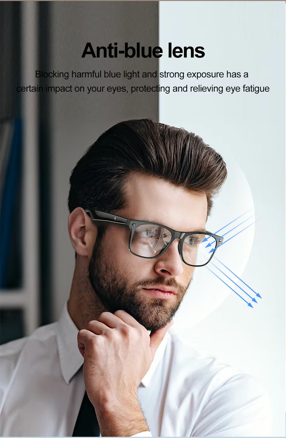 Anti-blue light lenses reduce eye strain for comfortable long-term wear